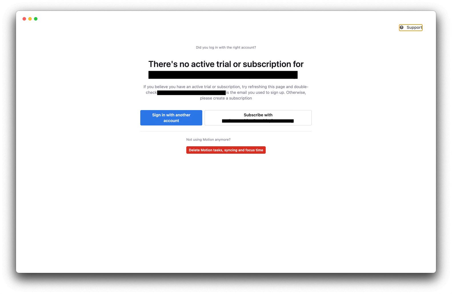 Finally, there is no offline mode or backup. As a web app, you must be connected to the internet to access your projects and tasks. This isn’t usually a problem, but it means I have to plan ahead if I intend to study during a long flight or while camping. As with any SaaS, it also puts you (and your data) at the mercy of the servers. For the first time in 2 years, I recently got an error saying I did not have an active subscription (despite renewing my annual plan – and bringing on 2 co-workers – 3 months ago). I sent an urgent request to Motion support, but their response time is rarely faster than 24 hours. It ended up being a temporary outage for maintenance, but, as a student, every 30 minutes is precious! I quit using Notion.so because of this exact scenario.